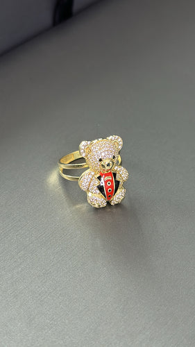 Anillo Oso Traje Rojo de Mujer Oro 10k